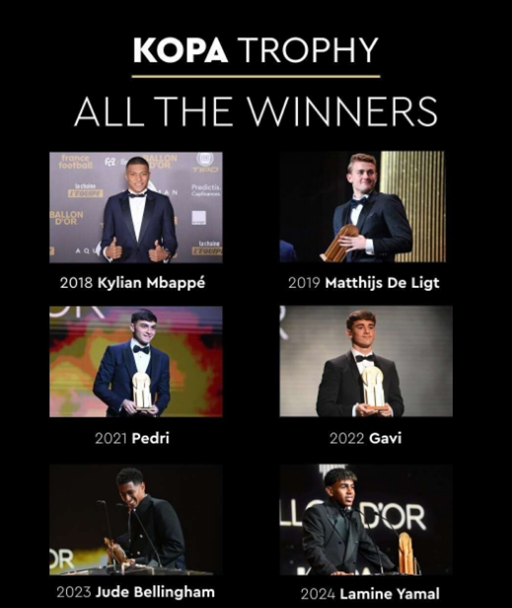 Lamine Yamal has won back-to-back Kopa Trophy