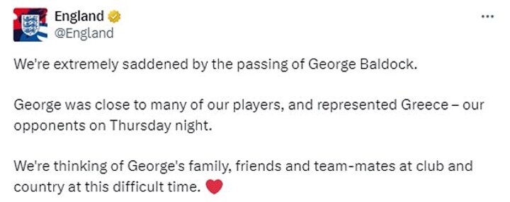 Also responding to the news, England football's official account said they were 'extremely saddened'.