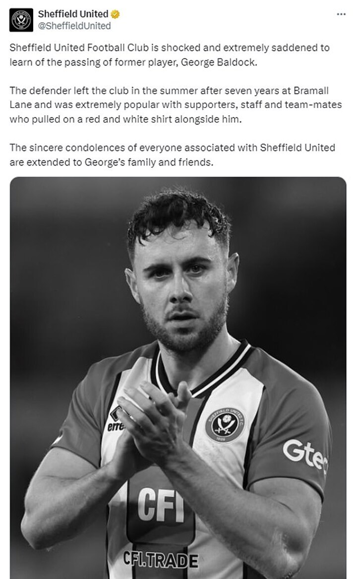 'Sheffield United Football Club is shocked and extremely saddened to learn of the passing of former player, George Baldock,' they posted on X.