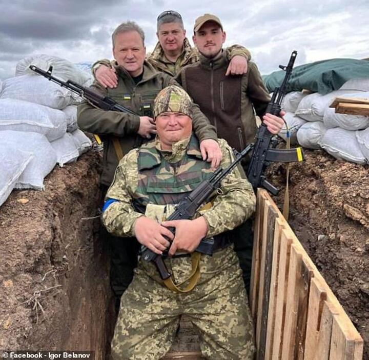 Belanov then posted a series of images of him holding a gun and in photos with other soldiers before posting on Facebook: 'Amazing courage and inexhaustible fighting spirit!