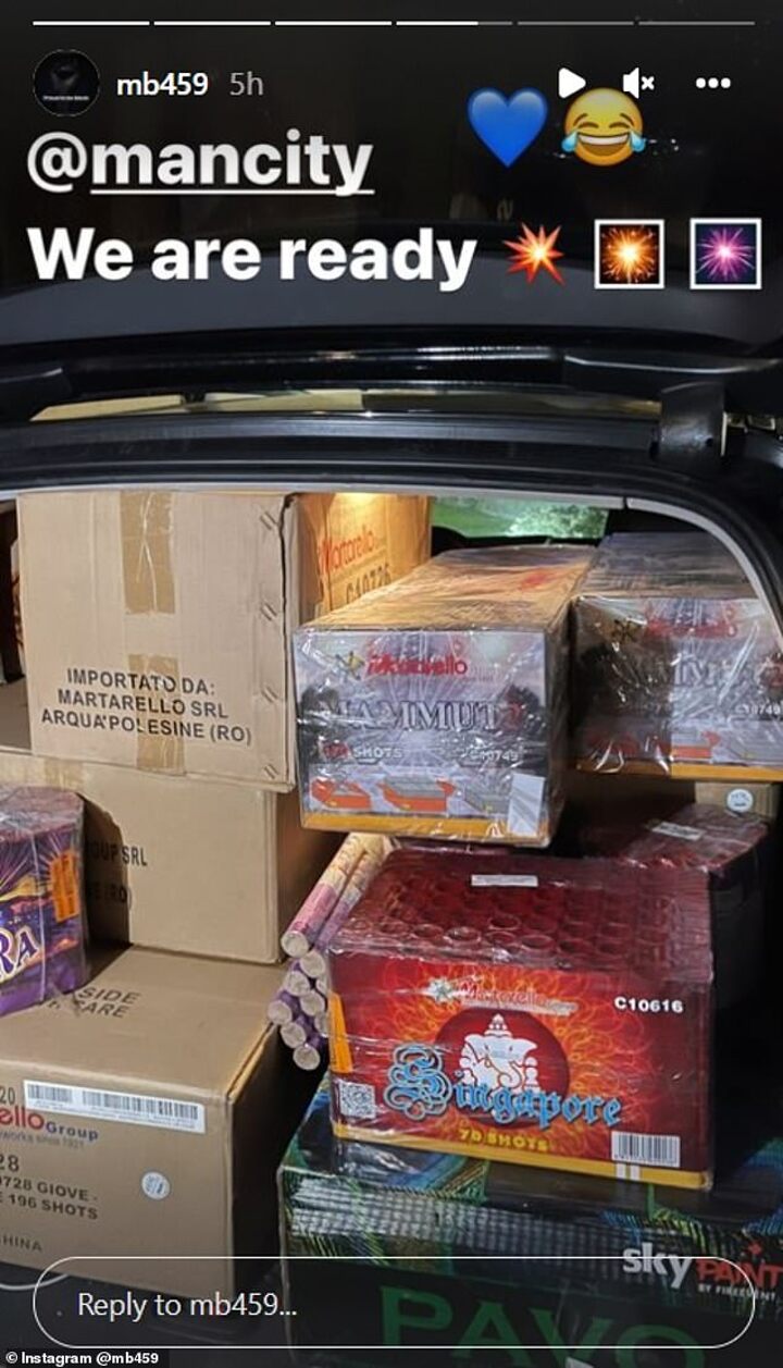 The Italian posted a photo of a car boot packed with several boxes of fireworks to his Instagram story.