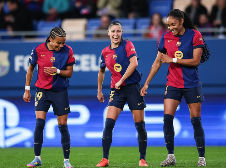 Holders Barcelona crushed Wolfsburg at the Estadi Johan Cruyff 6-1 to bring up a 10-2 aggregate success in the Women's Champions League quarter-finals.