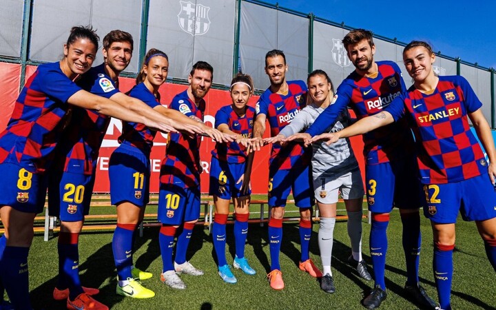 All captains from Barcelona men's team and women's team have taken a picture together.