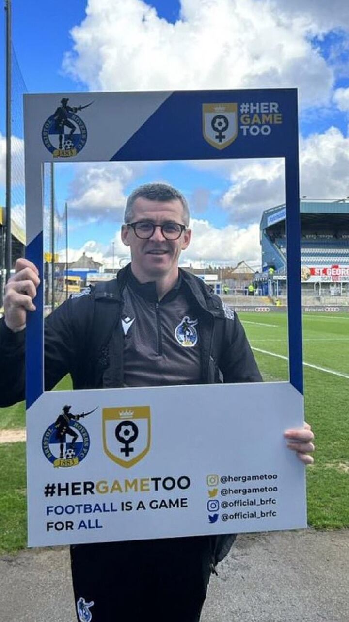 This is a campaign which aims to fight against sexism in sport, with Barton posing with a promotional card for the cause when he was Bristol Rovers manager.