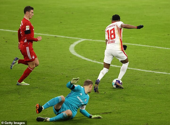 But it would be third time lucky for Nkunku after Leipzig broke once again, with the Frenchman latching onto an Emile Forsberg pass before taking it round Neuer, who had come miles out of his goal, and slotting into the empty net on 19 minutes.