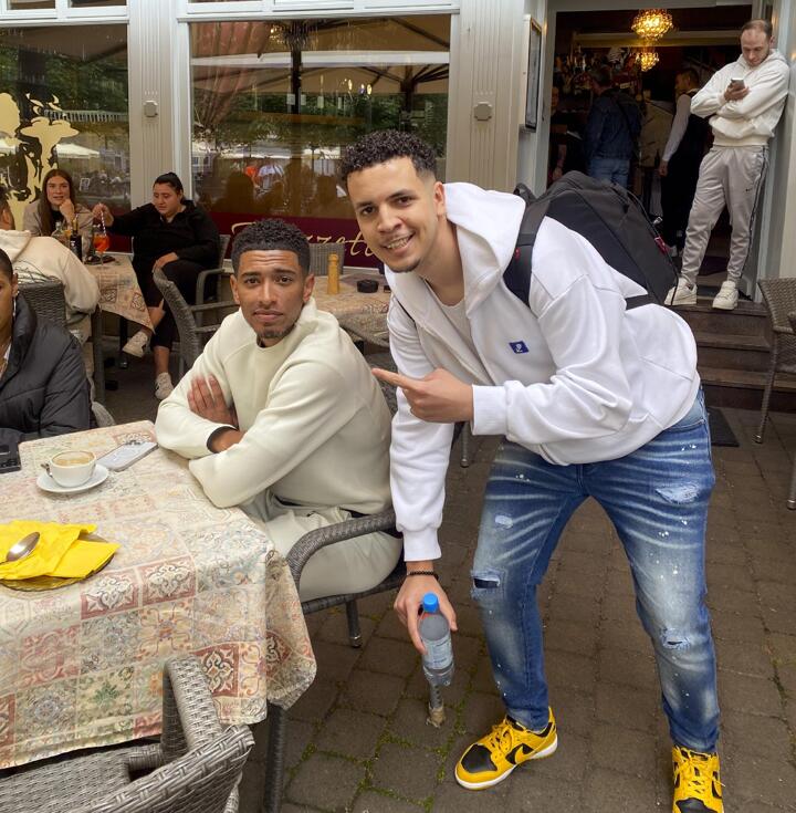 Bellingham was spotted at an Italian restaurant in Erfurt with his mum Denise as he made the most of his downtime.
