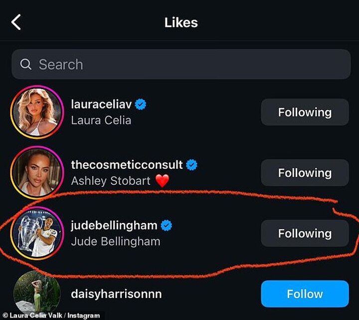 Jude Bellingham has 'unfollowed former love interest Laura Celia Valk', in a move reciprocated by the Dutch influencer.