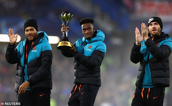 Injured trio Ben Chilwell, Reece James and Callum Hudson-Odoi walked out with the trophy to celebrate their success with the Blues fan base ahead of their Champions League last-16 first leg 2-0 win over Lille.
