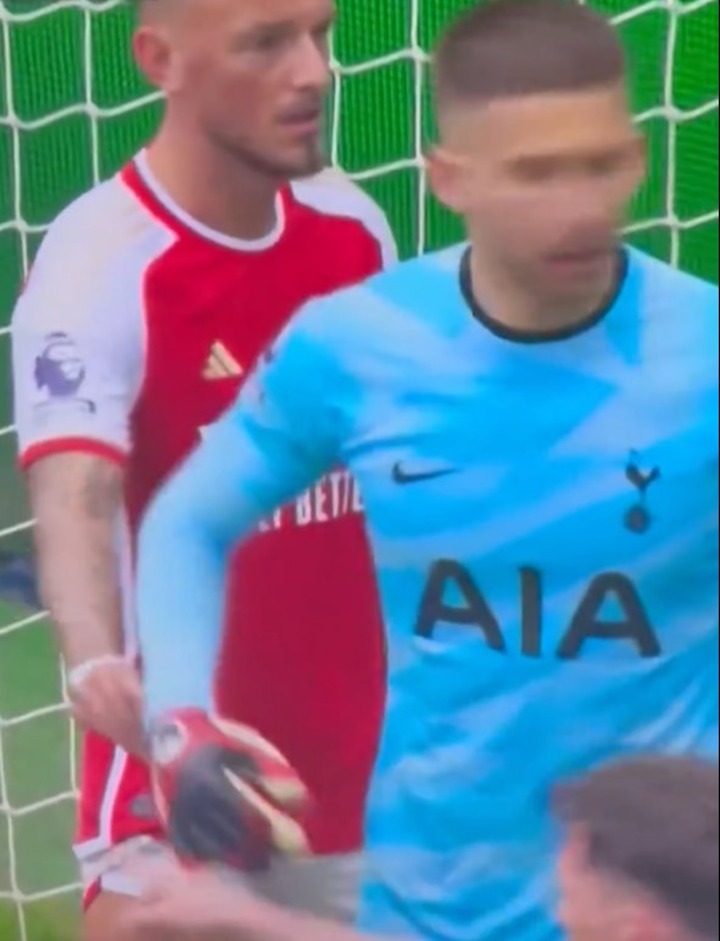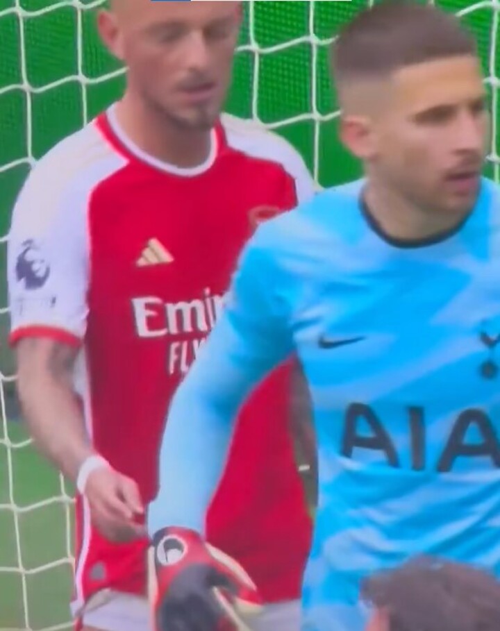 The Arsenal defender tried to unsettle Tottenham goalkeeper Guglielmo Vicario as the Gunners prepared to take a corner during the North London Derby.