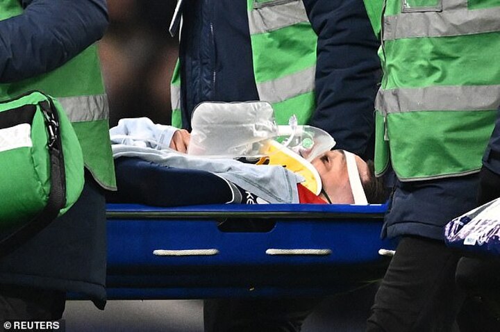 The 27-year-old received treatment on the field for nine minutes in total as he left the field on a stretcher to the applause of both sets of fans.