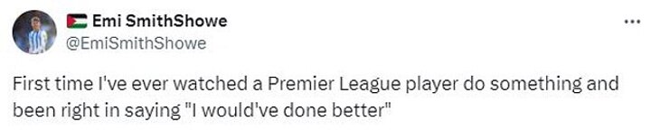 'First time I've ever watched a Premier League player do something and been right in saying "I would've done better"', said one fan on X (formerly Twitter).