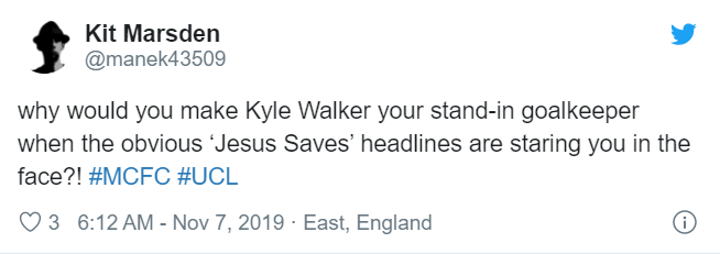 Here's a recap of the best tweets from Manchester City fans, with some even suggesting they'd like to see Walker with the gloves at Anfield...