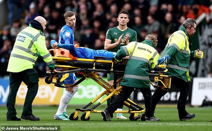 The 22-year-old was involved in a collision with Argyle centre-back Julio Pleguezuelo in the sixth minute of the clash at Home Park.