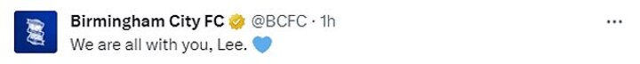 The Midlands club sent a message of support to the England U21 international, writing on social media: 'We are all with you, Lee.'