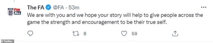 The teenager has been widely praised for making the announcement today, with fans and players congratulating him for his bravery as well as those from outside the world of football.