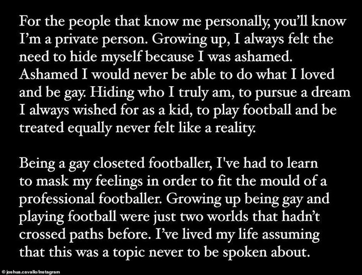 Cavallo said in his video: 'There is something personal that I need to share with everyone. I am a footballer and I am gay.