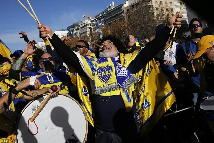Fans are chanting, banging drums, and generally having a good time as they prepare for the huge match on Sunday night. Hundreds of Boca Juniors fans gathered outside the team hotel on Saturday night chanting 'it doesn't matter where you play, we will always follow you.'