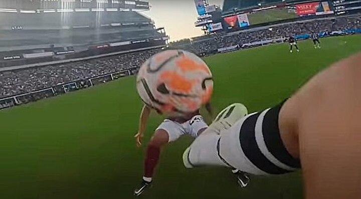A wide angle view of the pitch is captured and later cropped using AI auto-detection to hone in on the action. The bodycam also uses SteadiCam stablisation technology to ensure smooth footage fit for broadcast.