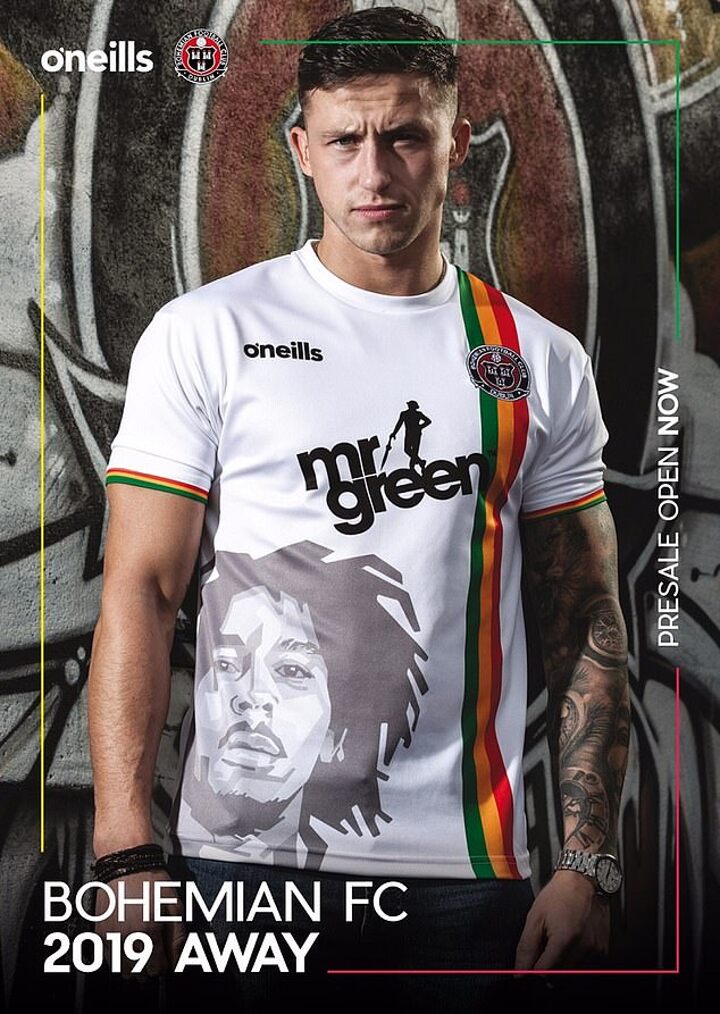 Irish side Bohemian have released a wacky away shirt for 2019, featuring a picture of Bob Marley's face - 38 years after he played a gig at their Dalymount Park stadium.