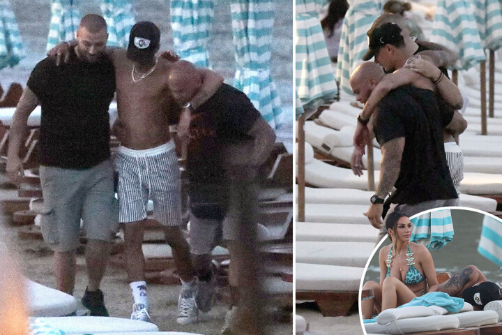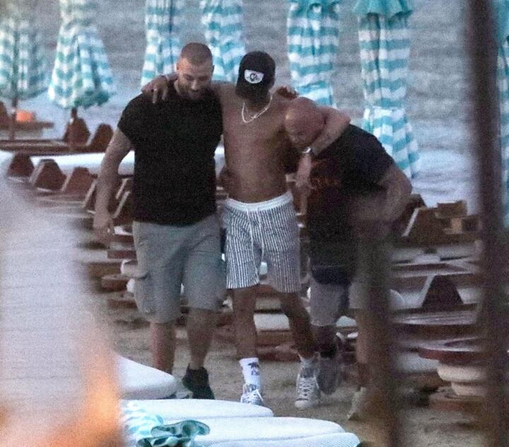 Dele, 23 — who had been boozing in 33C heat — was unsteady on his feet as two guards carried him away on Greek island Mykonos.
