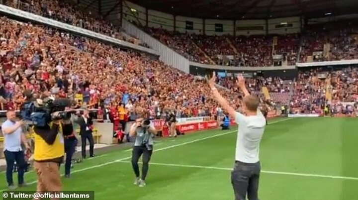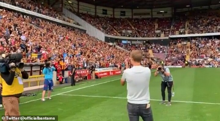 Prior to the match, Darby came onto the pitch to a standing ovation, before addressing both sets of supporters inside the sold-out Valley Parade stadium.