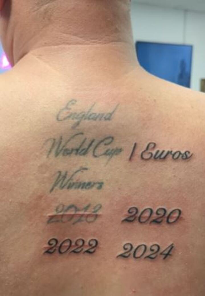 Another confident fan 'Ben' was congratulated by BRUX tattoo studio for his optimism after getting an inking on his back listing England as winners of the Euros.