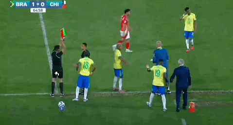 Chilean defender Guillermo Maripán was shown a red card before the break for a reckless challenge, but it was downgraded to a yellow after a VAR review.