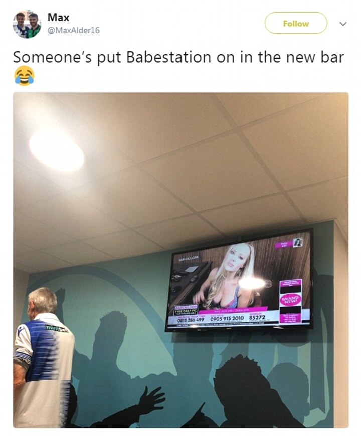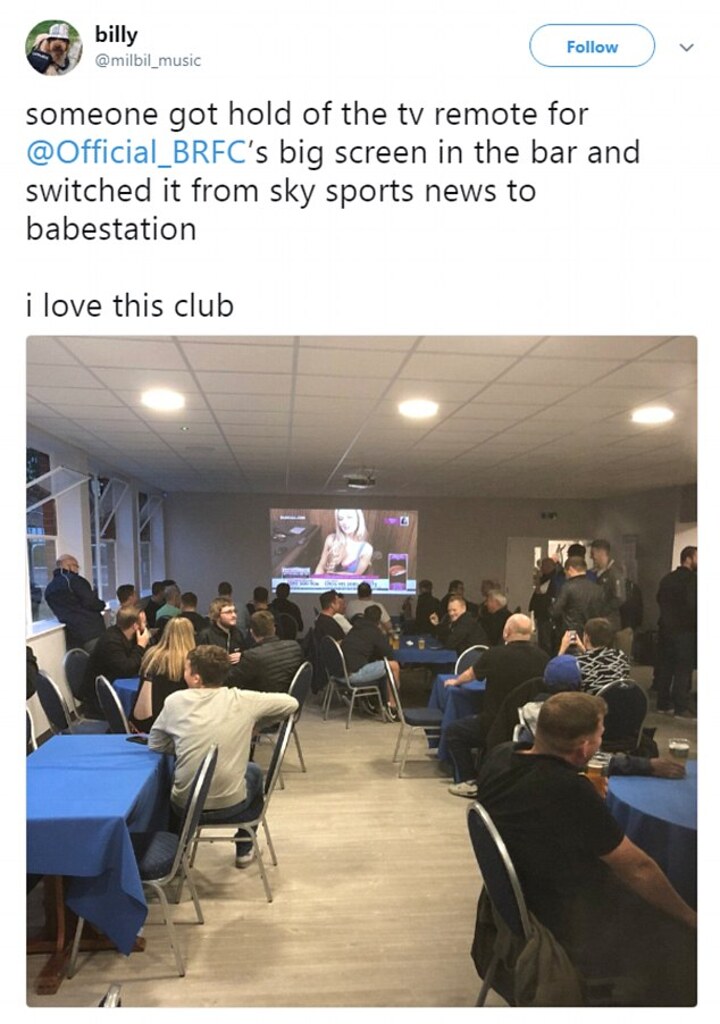 One fan tweeted: 'Someone's got hold of the TV remote for @Official_BRFC's big screen in the bar and switched it from sky sports news to babestation. I love this club'.