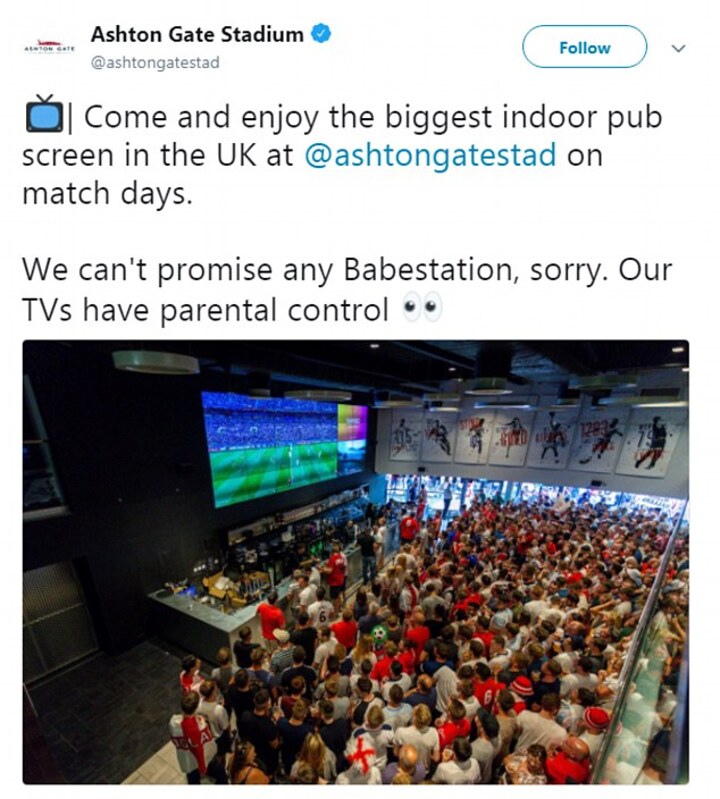 Ashton Gate Stadium, the home of Bristol City, waded in and poked fun at the situation by pointing out only football will be shown on their big screens.