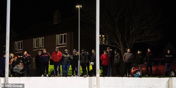 But the small group of officials and fans outside the ground erupted in joy after three minutes of stoppage time.