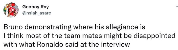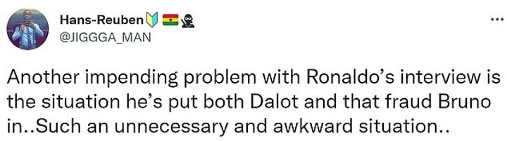 'Another impending problem with Ronaldo's interview is the situation he's put both [Diogo] Dalot and Bruno in. Such an unnecessary and awkward situation,' another wrote.