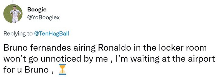 The support for Fernandes was not unanimous, however. 'Bruno Fernandes airing Cristiano Ronaldo in the locker room won't go unnoticed by me,' one fan wrote. 'I'm waiting at the airport for you, Bruno.'