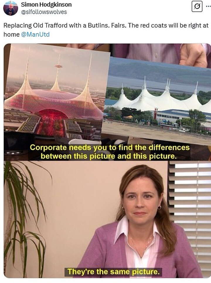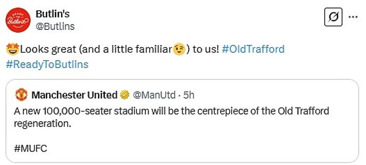 'Looks great (and a little familiar) to us! #OldTrafford #ReadyToButlins,' the British company said on social media platform X.