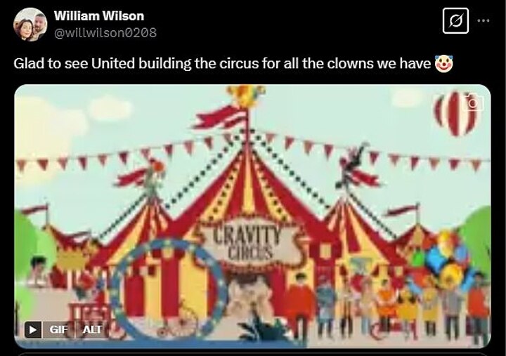 'Haha circus tent,' wrote one football fan, before another seemed to send a barb towards the unpopular Glazer family co-owners: 'Glazers really building themselves a circus tent for the clowns that they are.'