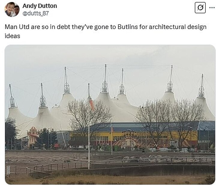 Another posted: 'Man Utd are so in debt they've gone to Butlin's for architectural design ideas.'