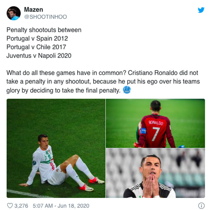 Cristiano Ronaldo has received a whole lot of criticism after he didn't step up to take a penalty in the Coppa Italia final shoot-out defeat to Napoli.