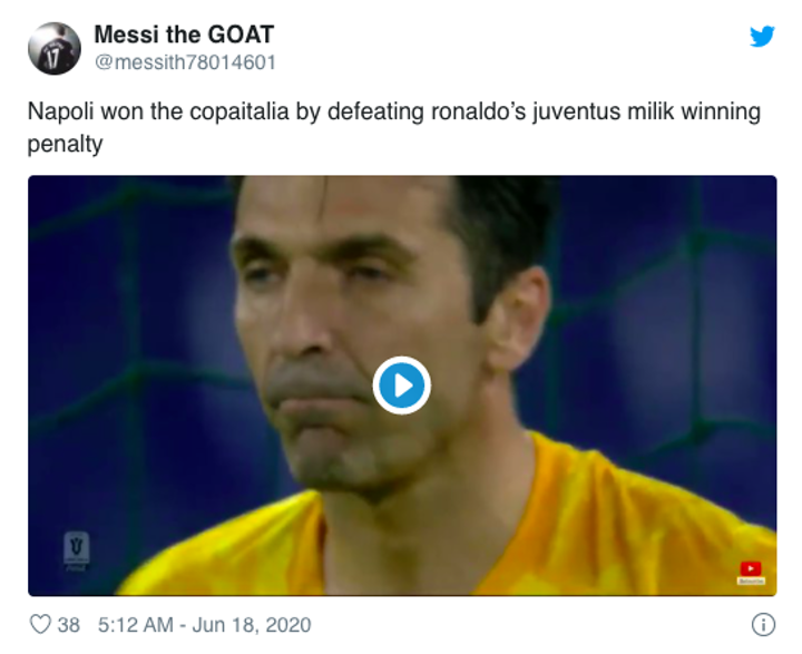 Both Paulo Dybala and Danilo missed from 12 yards while Napoli scored all four through Lorenzo Insigne, Matteo Politano, Nikola Maksimovic and Arkadiusz Milik - the latter putting away the winner to secure Gennaro Gattuso's first trophy.