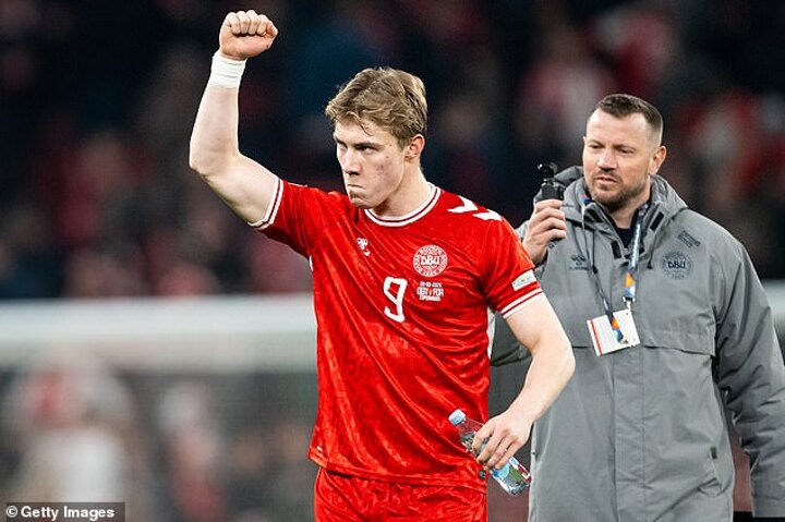 Rasmus Hojlund came off the bench to give the Danes a slender lead in the tie with a lovely finish 12 minutes from time - and copied Ronaldo's trademark celebration.