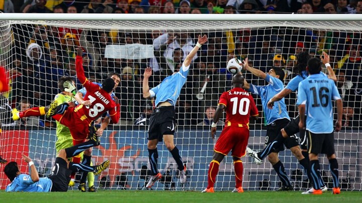 During the first World Cup on African soil, Ghana reached the quarter-finals after overcoming the United States in extra-time in the second round. Stand-out performances by Sulley Muntari and Asamoah Gyan led Ghana to last eight where they met Uruguay. They should have progressed to the semi-finals but a controversial Luis Suarez handball denied the Ghanaians at the end of extra-time and then Asamoah Gyan missed the resulting penalty.