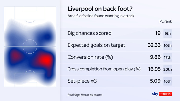 How can a side who ranks top for chances created (278) equally place ninth for shots on target (99)? Liverpool are arriving in the final third, just without the intensity or numbers needed to convert a chance into anything meaningful. Fast breaks used to be a pillar of identity. They scored a league-high 14 times via that method last season. This year their tally stands at just three.