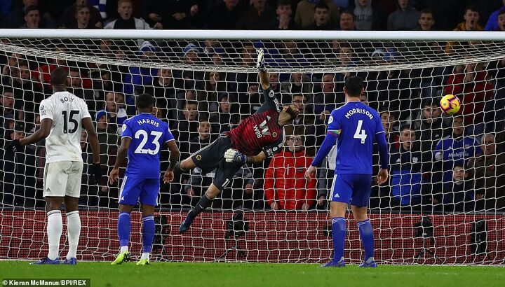 Cardiff responded with effort and in the 37th minute went close to equalising. Sean Morrison made himself a nuisance at a looping corner that was cleared only as far as Harry Arter, who struck a sweet half-volley with his left boot that curled away to hit the post.
