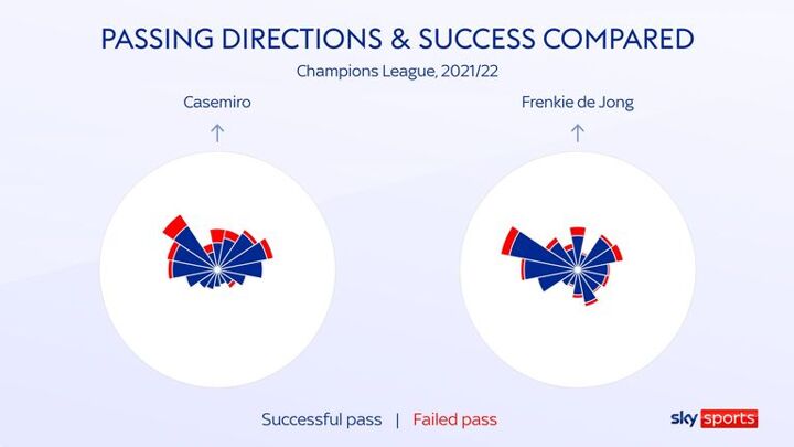 The graphic below elaborates further and shows the passing distances of both players, revealing how Casemiro fires a far higher frequency of long passes - which makes his accuracy all the more impressive.