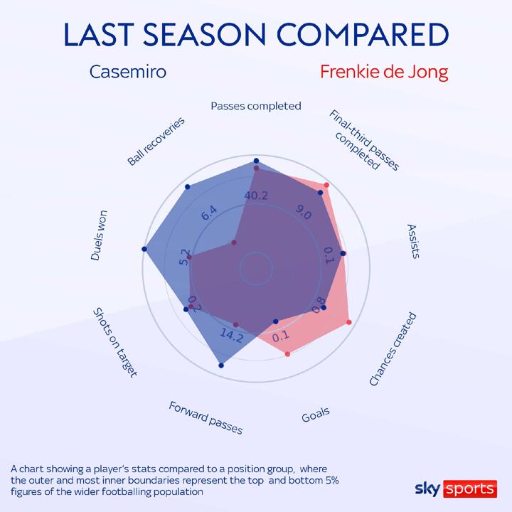 Manchester United have signed Casemiro for £70m and are reportedly still pursuing Barcelona midfielder Frenkie de Jong - but how do the two players differ?