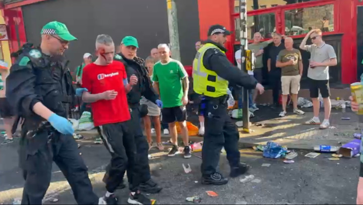 Many were filmed climbing lampposts and setting off pyro as the boozy street party kicked off at around 3pm.