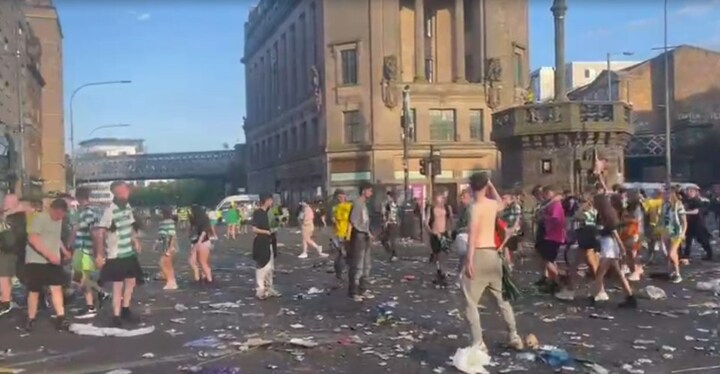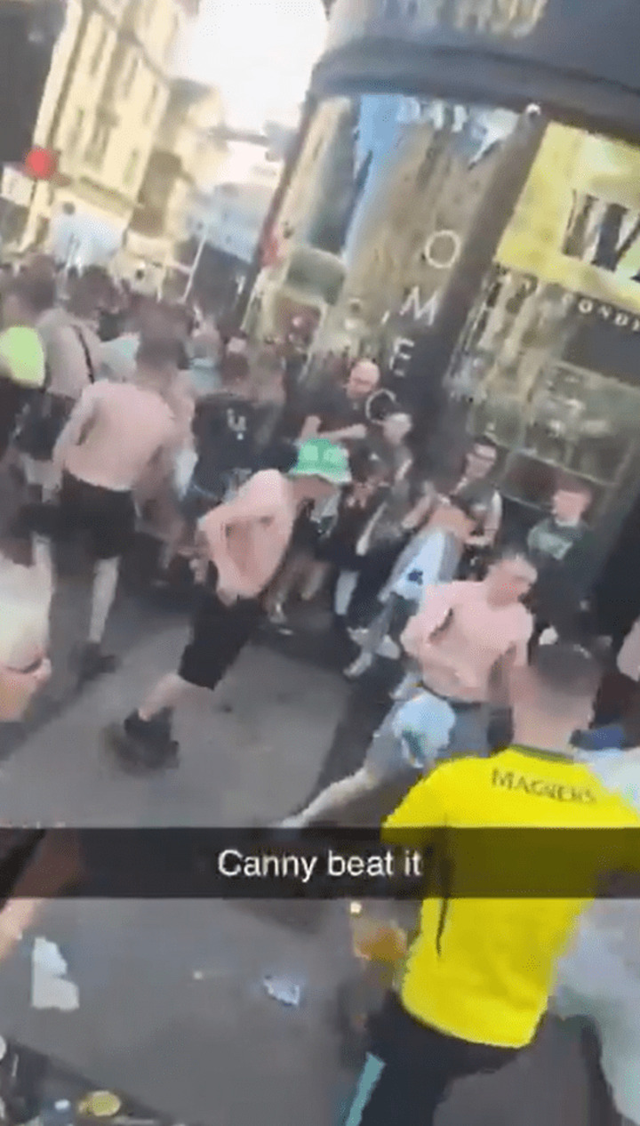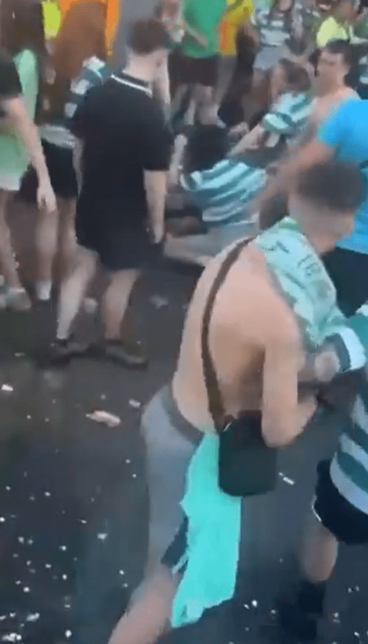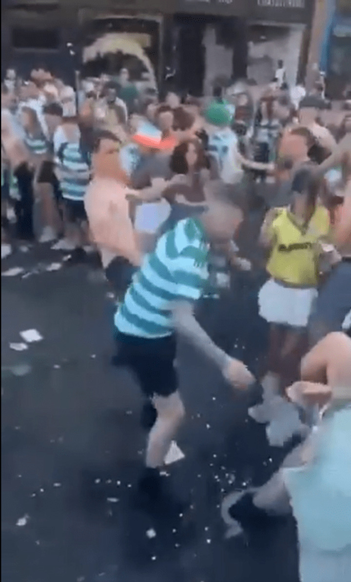 CELTIC fans have been filmed fighting in the streets of Glasgow during their team's league title party.