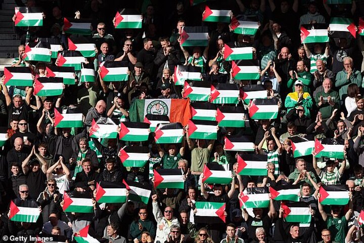 Members of the clubs' Green Bridgade supporters group previously acted against the wishes of the Scottish club during a weekend tie against Hearts, mounting a similar display in a show of solidarity with Palestine amidst roiling conflict in Gaza.