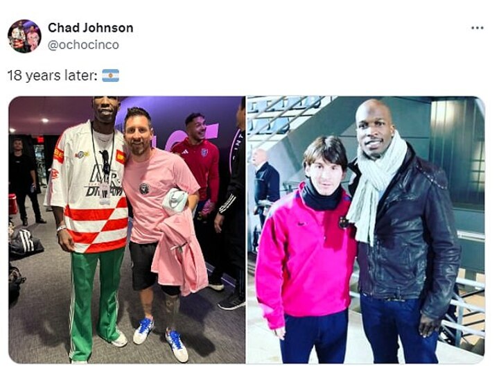 Former NFL star Chad Johnson crossed paths with Lionel Messi again on Wednesday night - 18 years on from his first encounter with the soccer legend.