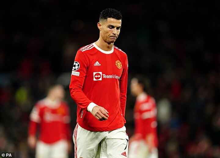 It was a night to forget overall for Ronaldo as he was also involved in a clash of heads with his own captain Harry Maguire - with the forward left clutching his mouth after being hurt in the accidental collision during a corner.