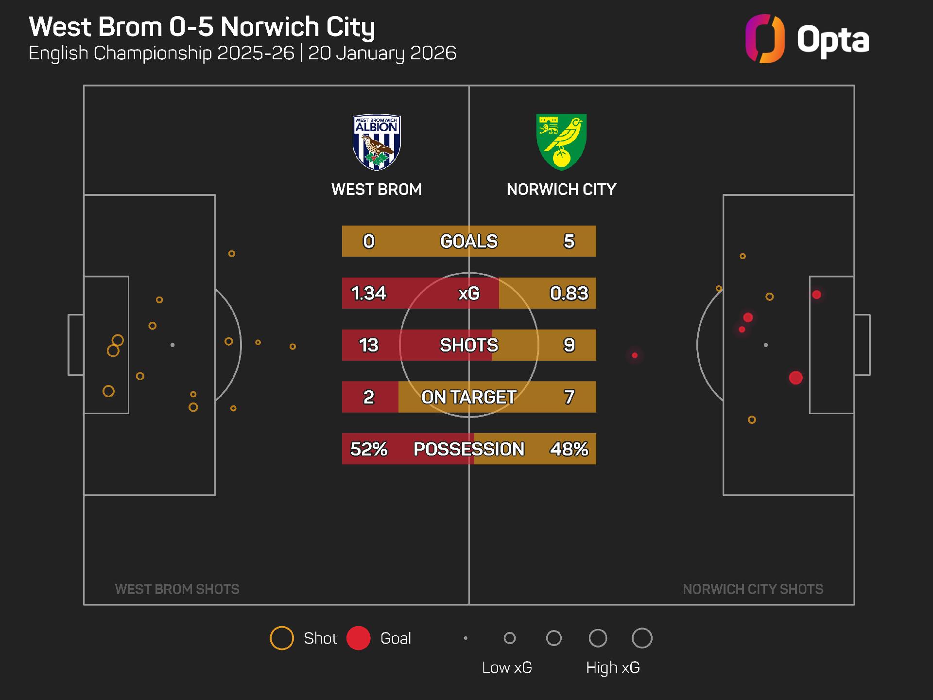 Data Debrief: Norwich take their chances, West Brom's worst loss in 26 years
