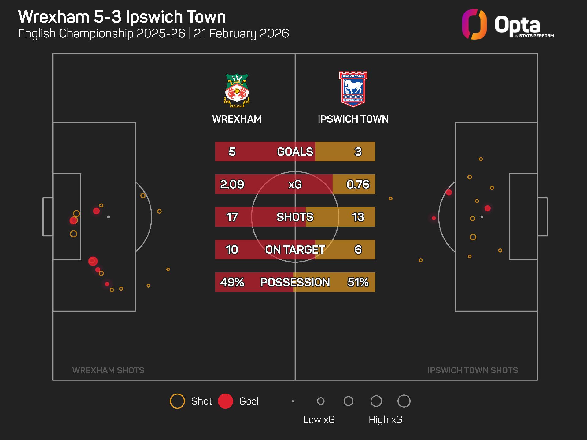Wrexham registered an expected goals total of 2.09 from their 17 shots, 10 of which were on target, compared to Ipswich's 0.81 from their 13 attempts, though it was Parkinson's team's powers of recovery that were on show once again.